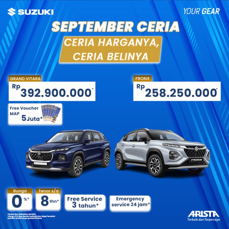 Suzuki Arista menyediakan promo khusus untuk Anda, dapatkan mobil impianmu dengan: